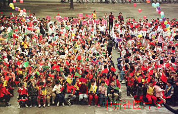 福州市的百年學堂--實驗小學的孩子們17日舉行各種喜慶活動,迎接澳門回歸。