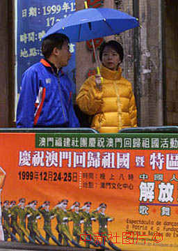 澳門民間的慶回歸活動陸續(xù)展開,預告解放軍歌舞團演出的海報出現(xiàn)在大街小巷。中新社傳真 宗金柱 攝