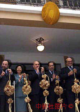 葡萄牙駐澳門領事館十八日開館,澳督到場祝賀并完成他在澳門的最后一次剪彩。中新社傳真 宗金柱 攝