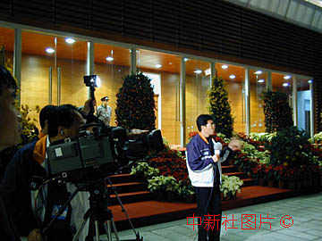 澳門政權(quán)交接大廳的貴賓花園大門布置完畢,中央電視臺實況轉(zhuǎn)播人員深夜排練采訪中葡領(lǐng)導(dǎo)人和世界各國貴賓入場的盛況。 中新社數(shù)碼傳真 賈國榮攝