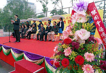 香港工商界十八日在雨中舉行"維園千禧博覽"會的開幕式,以迎接千禧年的到來。中新社傳真楊佐桓攝