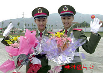 駐澳部隊戰(zhàn)士陳紅陳巖是來自哈爾濱的雙生姐妹,被稱為軍中姐妹花。中新社數(shù)碼傳真 王瑤攝