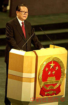 在中葡澳門政權交接儀式上,中國國家主席江澤民發表重要講話。中新社數碼傳真 毛建軍攝