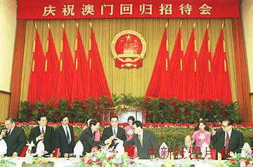 為慶祝澳門順利回歸,二十日下午首都各界人士在北京人民大會堂歡聚一堂,參加國務院舉行的慶祝澳門回歸招待會。作者:任海霞
