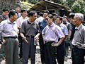 由中國(guó)國(guó)家經(jīng)貿(mào)委主任李榮融率領(lǐng)的中央調(diào)查組,日前前往廣西壯族自治區(qū)南丹縣,調(diào)查當(dāng)?shù)氐V井重大透水事故。圖中左三戴墨鏡者為李榮融。
