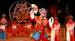 京劇的前身--徽劇 徽劇,淵源于明代的"徽池雅調(diào)"。明朝嘉靖年間,江西弋陽(yáng)腔流傳到安徽青陽(yáng),貴池一帶,與當(dāng)?shù)孛癖娤猜剺?lè)見(jiàn)的民間曲調(diào)相結(jié)合,創(chuàng)造了新腔,形成了具有當(dāng)?shù)氐胤教厣那嚓?yáng)腔;青陽(yáng)腔又受到民間山歌小調(diào)和昆曲的影響,長(zhǎng)期發(fā)展而形成今天的徽劇。 清朝乾隆年間,徽劇名藝人高朗亭,郝天壽等,把徽劇帶到揚(yáng)州演出。當(dāng)時(shí)揚(yáng)州是全國(guó)文化中心之一,是"花部"的集中地,但很快即被藝術(shù)精湛的徽劇壓倒。乾隆五十五年,高朗亭又帶到了北京,受到了北京觀眾的歡迎。接著,又引起"四喜","春臺(tái)","和春"等徽班進(jìn)京。 徽劇進(jìn)京不久,漢劇也進(jìn)京,徽劇又從漢劇中吸收了西皮,進(jìn)一步豐富,發(fā)展了自己的聲腔。從此,徽劇不僅闖進(jìn)了皇宮,振動(dòng)了京城,而且廣泛流傳,影響了全國(guó).它在北方扎下根子,逐漸吸收了北方的京腔,其高腔與北方語(yǔ)言結(jié)合起來(lái),發(fā)展成為京劇。它在南方的戲曲影響也十分深遠(yuǎn),江西的贛劇、四川的川劇、廣東的粵劇、廣西的桂劇、云南的滇劇,都受到徽劇不同程度的影響。 對(duì)徽劇表演藝術(shù)有著突出貢獻(xiàn)的杰出代表是老藝人程長(zhǎng)庚。程長(zhǎng)庚名椿,字玉珊,安徽潛山人。他把徽音、京音、楚音兼收并用,脫俗創(chuàng)新,卓然成家,對(duì)徽劇來(lái)說(shuō),他起了承前作用,對(duì)京戲來(lái)說(shuō),他起了起后作用,因此,他成為京劇的開(kāi)山祖師。 徽劇的表演藝術(shù),豐富而多采。它講究平臺(tái)與高臺(tái)武功,講究身段、亮相的雕塑美,講究人物形象的塑造和畫(huà)面氣派等。平臺(tái)與高臺(tái)武功在徽劇里最為突出,平臺(tái)如"獨(dú)腳單踢"、"叉腿單踢"、"刀門(mén)"、"飛叉"等都異常驚險(xiǎn),至于高臺(tái)武工,更為險(xiǎn)要,一般演員要翻三張桌子,有的要翻七張桌子。身段、亮相,在徽戲里很有雕塑藝術(shù)感。徽劇注重集體表演,必要時(shí)眾歌齊舞,顯得氣勢(shì)壯偉,場(chǎng)面熱烈。徽劇的劇目很多,據(jù)記載有一千四百零四個(gè),因年代較久,多為手抄本,不少的本子以失傳。解放后,經(jīng)過(guò)挖掘整理,富有徽劇特色的代表劇目有:《義虎報(bào)》、《巧姻緣》、《齊王點(diǎn)馬》、《水淹七軍》等。